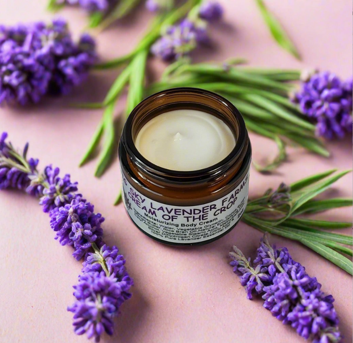 Cream of the Crop is a moisturizing body cream mixed with our steam-distilled lavender oil. It's made with mango and cocoa butters that melt into your skin for dry skin relief.