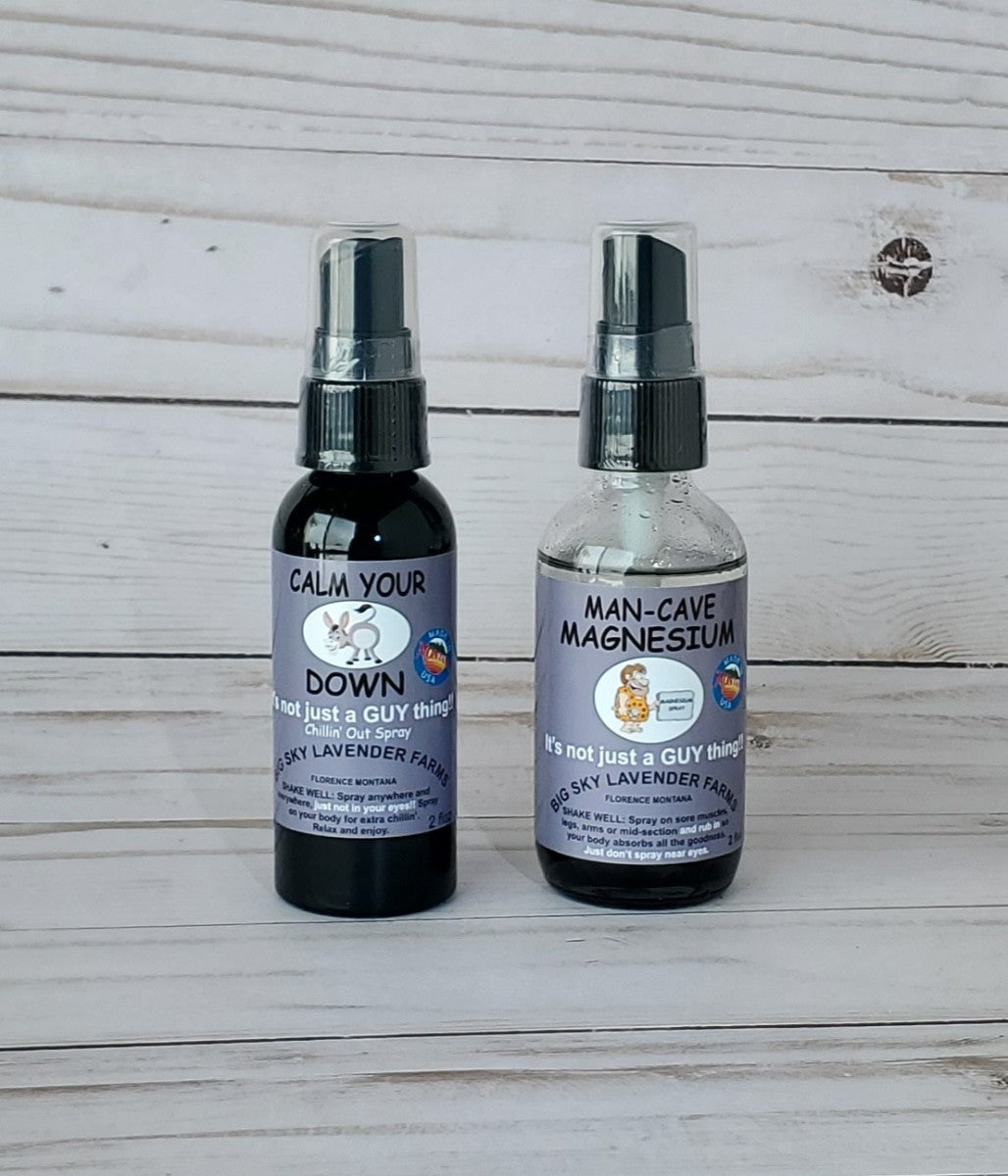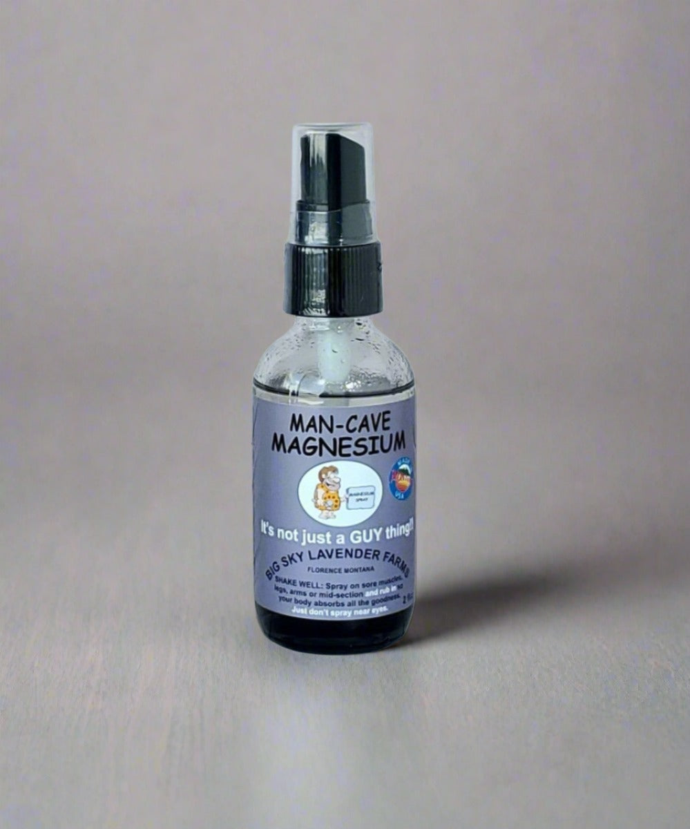 Our Man Cave Magnesium Spray comes in a 2 oz black balayage glass bottle.